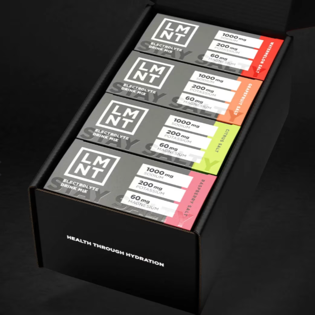 LMNT electrolyte drink mixes provide a balanced blend of sodium, potassium, and magnesium to help support hydration, energy, and muscle function. These are especially helpful for individuals who need additional electrolyte support.